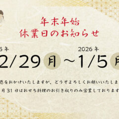 2026年日本料理なかや「おせち料理」完売いたしました。